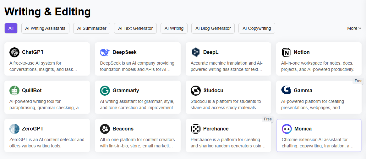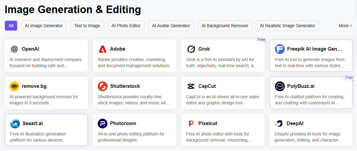✅ 다양한 AI 도구들을 한눈에 비교 가능