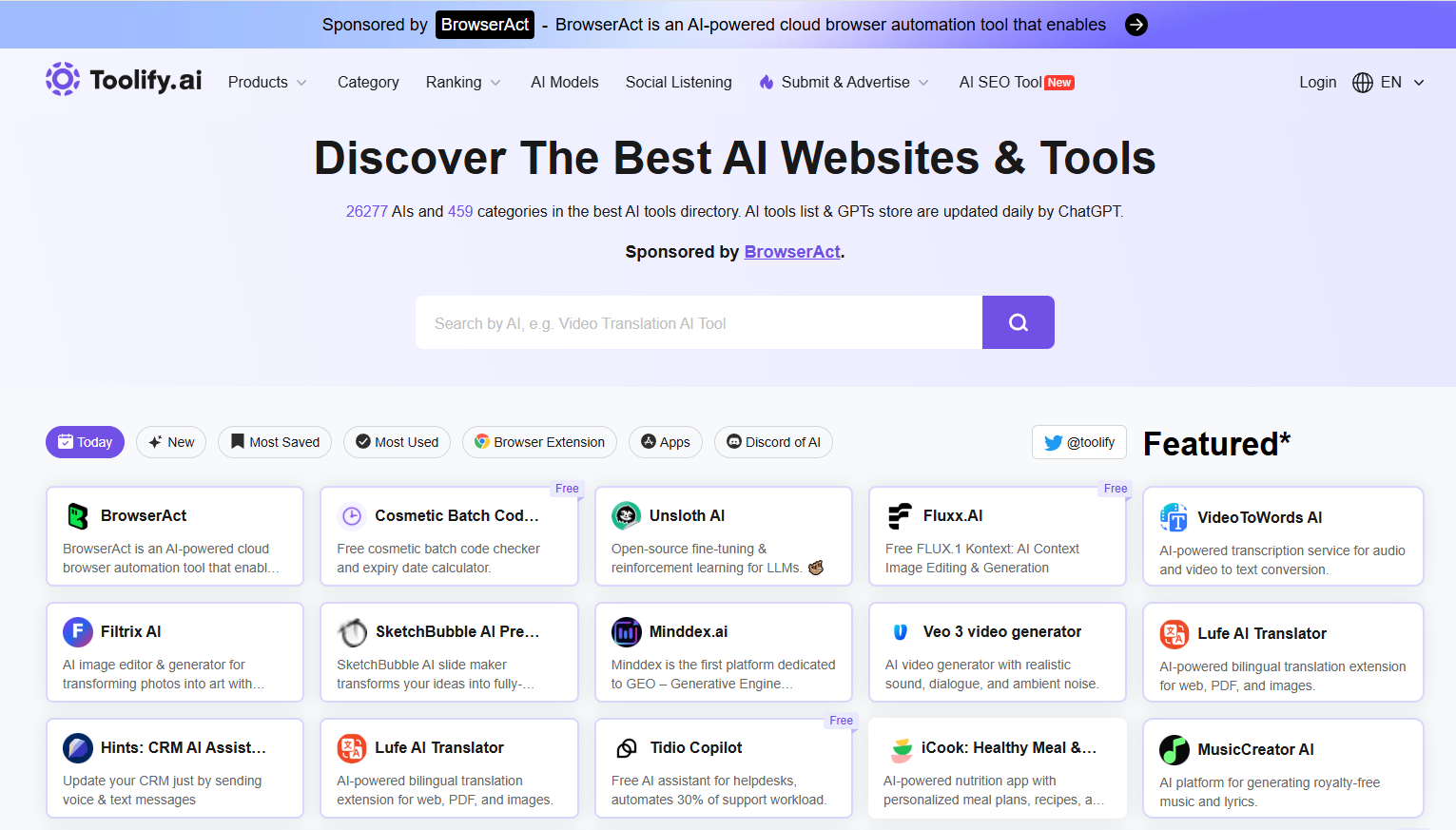 툴리파이(Toolify.ai)는 다양한 인공지능(AI) 도구를 카테고리별로 정리해 누구나 쉽고 빠르게 찾을 수 있도록 도와주는 플랫폼입니다.